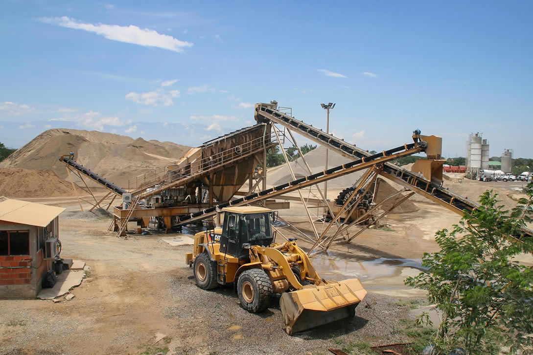 Tenemos instaladas 2 plantas de trituración con una producción diaria de 1000 m3 entre gravillas de calibre ¾”, 1”, 1 ¼”, y 1 ½”, arena natural y de trituración; todos los materiales son lavados.